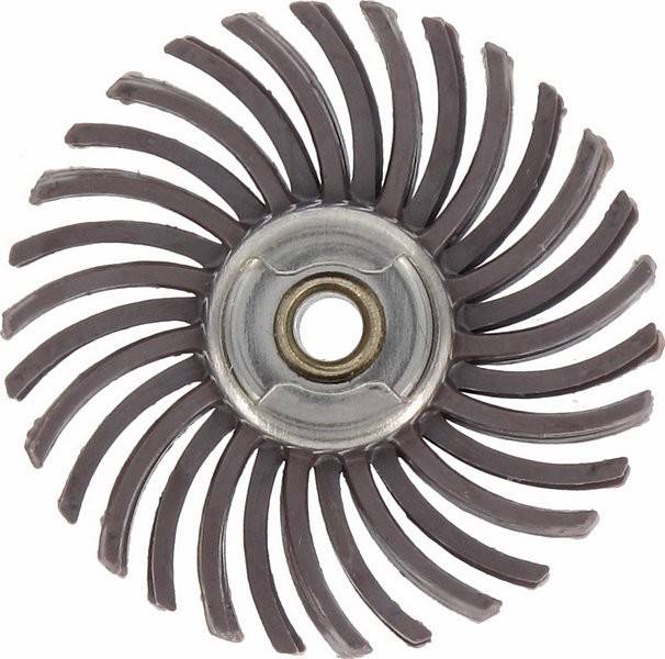 Was kannst du damit tun? Ideal zur Detailreinigung und für leichte Schleifaufgaben. Ermöglicht das Schleifen von Konturen, Details und schwer erreichbaren Bereichen. Integrierte Polierpaste Gummiborsten enthalten Schleifmittel, daher keine Polierpaste erforderlich. Entfernt die äußere Farbschicht, ohne die darunter liegende Grundschicht zu beschädigen, und entfernt bei geringem Druck die Farbe, aber nicht das Holz. Hochleistungs-Schleifbürsten und Feinschleifscheiben sind in feinen, mittleren und groben Körnungen erhältlich Wie funktioniert es?. Verwendung mit Aufspanndorn SC402 oder 402. Der exklusive Easy SpeedClic (SC)-Mechanismus von Dremel sorgt für einen schnellen, leichten und schlüssellosen Scheibenwechsel: ZIEHEN DREHEN KLICKEN. 6 Mal schnellerer Zubehörwechsel als mit einem Standarddorn (EZ SpeedClic Aufspanndorne SC402 und 402 separat erhältlich). Hochleistungs-Schleifbürsten werden am besten mit der Kante am Werkstück angesetzt und benötigen nur geringen Druck, um Ergebnisse zu erzielen. Wenn das Ergebnis nicht ausreicht, sollte eine der gröberen Bürsten verwendet werden. Sowohl kompatibel mit dem exklusiven Dremel SC402 EZ SpeedClic-Aufspanndorn als auch mit dem Standard-Aufspanndorn 402 Zur Verwendung auf folgenden Materialien. Geeignet für die Verwendung auf Holz, Aluminium, Kunststoff, Metall, Stahl und Vinyl. Empfohlene Drehzahl. 10.000 - 15.000 1/min.