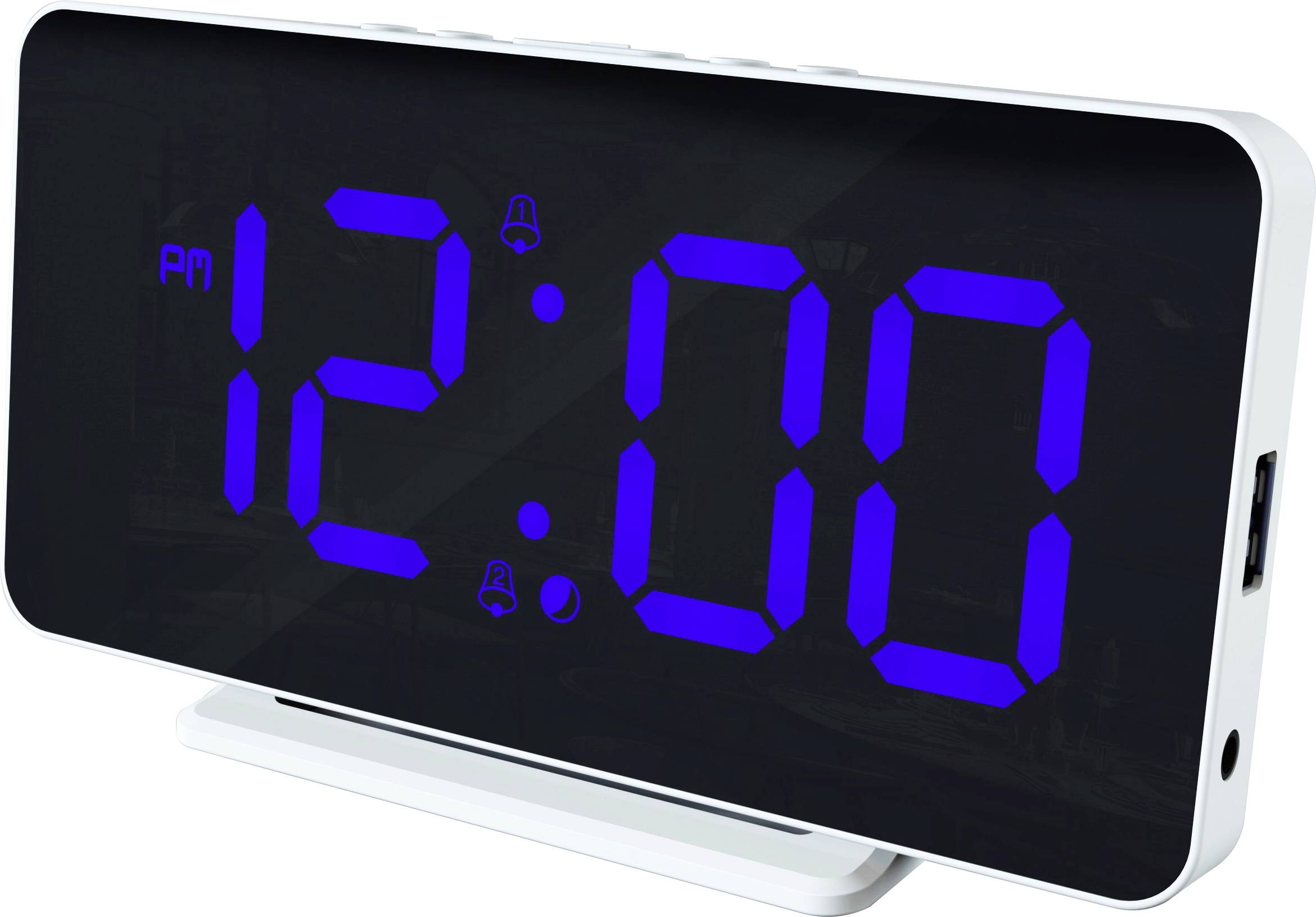 Die Uhrzeit kann auf dem geräumigen LED-Display mit blauen Zahlen deutlich abgelesen werden. Der Wecker zeigt auch Informationen wie Datum oder Temperatur (in Celsius oder Fahrenheit) an. Sie stellen dies selbst ein. Der Bildschirm kann in drei Schritten abgeblendet werden. Zum Beispiel ist es bei Tageslicht lesbar oder bei Dunkelheit nicht zu hell.