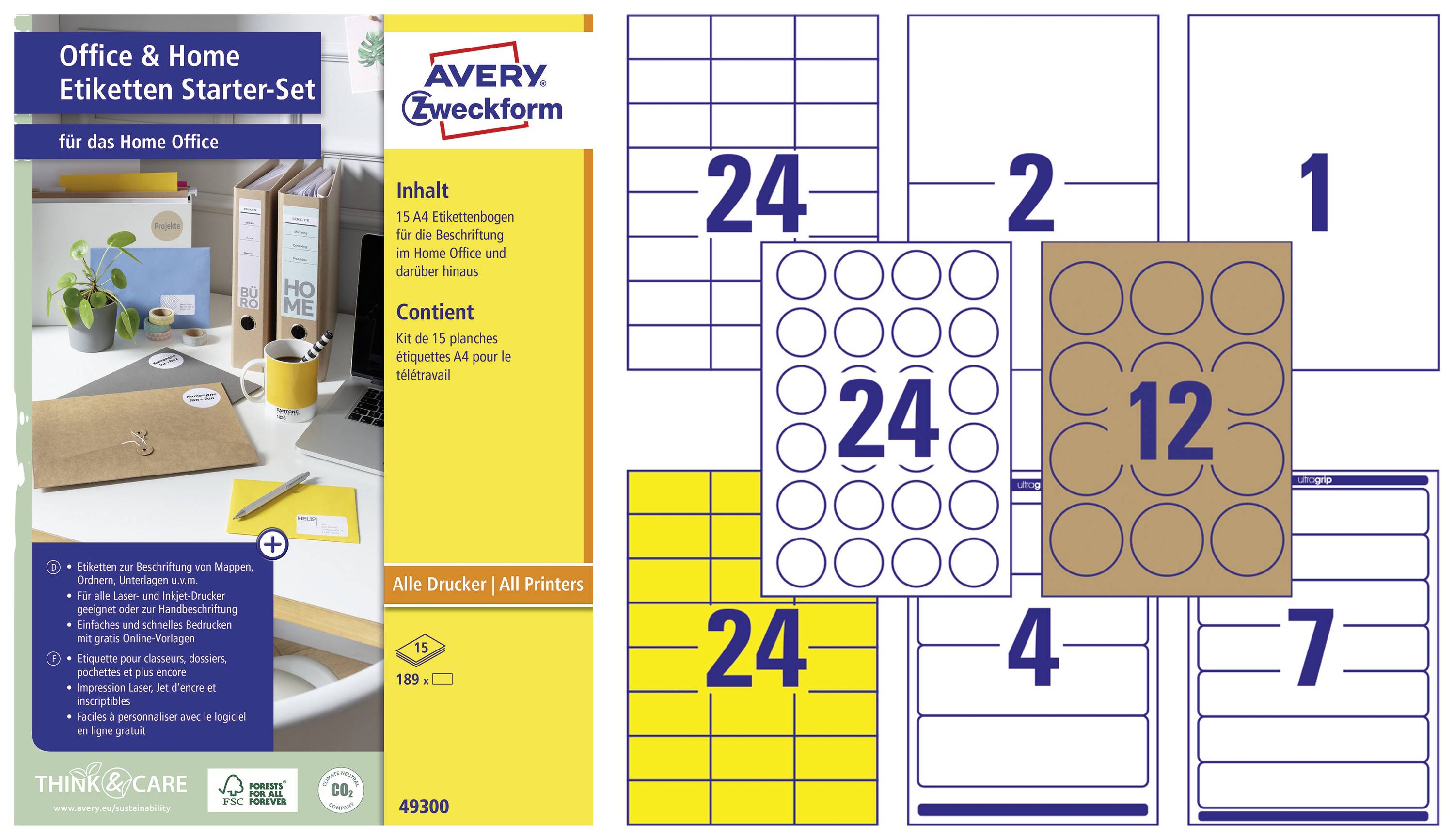 Praktisches Office & Home Set für das Home Office und private Zuhause mit verschiedenen Etikettenbogen zum Bedrucken oder Handbeschriften