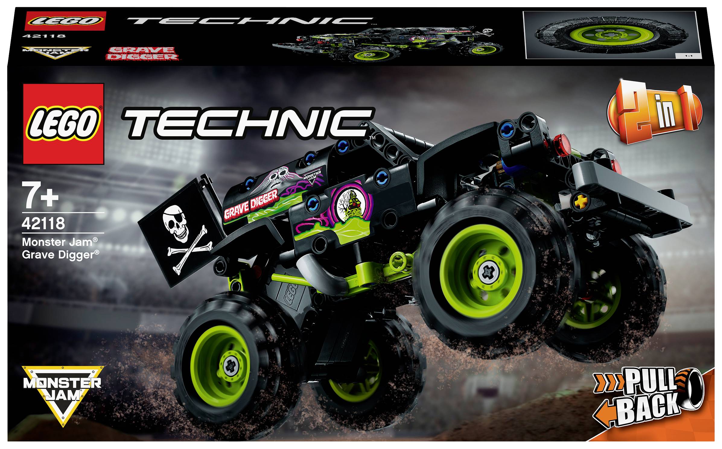 Ist das witzige Spielzeug als Geschenk für ein Kind gedacht, das Monster Jam® Monstertrucks liebt? Der LEGO® Technic Monster Jam Grave Digger® (42118) ist ein Monstertruck mit Rückziehmotor und unzähligen faszinierenden Funktionen. Zu den authentischen Merkmalen zählen die typischen Grave Digger Grafiken sowie riesige Reifen, eine bewegliche Flagge und rote Frontscheinwerfer. Wenn Kinder die legendären Stunts eines der berühmtesten und legendärsten Monstertrucks nachstellen, können sie das Monster Jam Spektakel hautnah erleben.Megastarkes 2-in-1-ModellReizt dich eine neue Herausforderung? Dann hör dir das an! Der Grave Digger lässt sich in einen Gelände-Buggy umbauen, um noch mehr Bauspaß zu bieten. In der kostenlosen LEGO Building Instructions App sind Instructions PLUS verfügbar. Diese interaktive Bauanleitung enthält Vergrößerungs- und Drehfunktionen, die Kindern das Bauen erleichtern.Inspiration für die nächste Generation von IngenieurenDie Fahrzeuge aus dem LEGO Technic Universum sehen genau wie die echten Vorbilder aus. Und die realistischen Funktionen sind eine tolle Einführung in Maschinenbau und Mechanik.