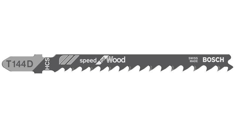 Das T 144 D Speed for Wood Stichsägeblatt macht schnelle gerade Schnitte in Holz. Die scharfgeschliffenen, geschränkten Zähne ermöglichen schnelle Ergebnisse. Das Blatt aus Kohlenstoffstahl ist für Weichholz und nicht-abrasive Holzwerkstoffe geeignet. Die große progressive Zahnteilung des Blatts (4-5,2 mm) ermöglicht es, eine Vielzahl an Holzmaterialien mit einer Dicke von 5-50 mm zu schneiden.