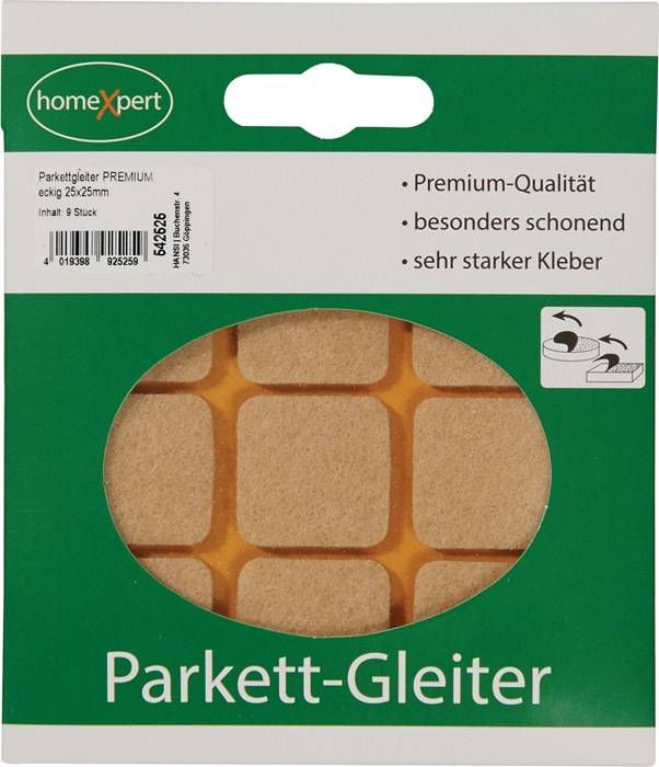 Parkettgleiter Premium 25 x 25mm Filz natur eck.selbstkl.