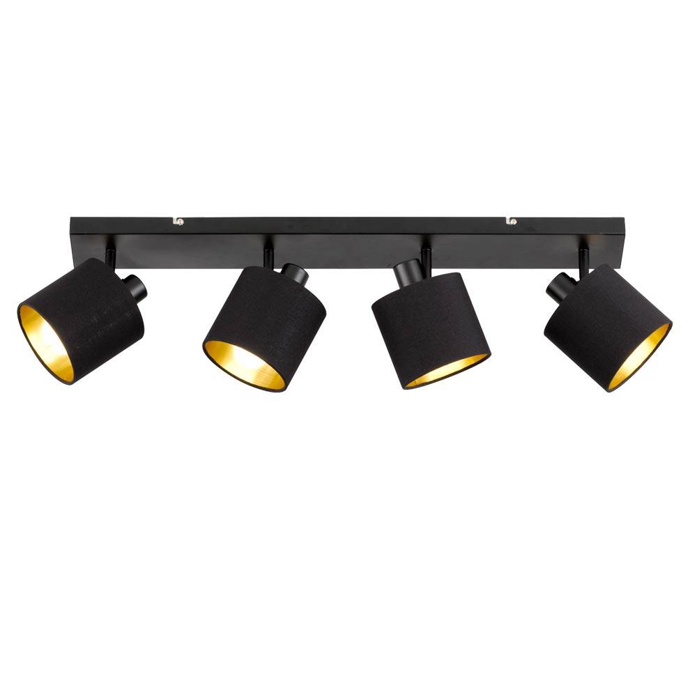Diese moderne Deckenleuchte ist in schwarz-gold gehalten und lässt sich aufgrund ihres Designs in nahezu jedem Wohnraum integrieren. Die vier Spots sind außen in schwarz gehalten, im Inneren glänzen sie jedoch in einem goldfarbenem Ton. Alle Spots sind verstellbar, sodass Sie die Beleuchtung des gewählten Wohnraums individuell anpassen können.