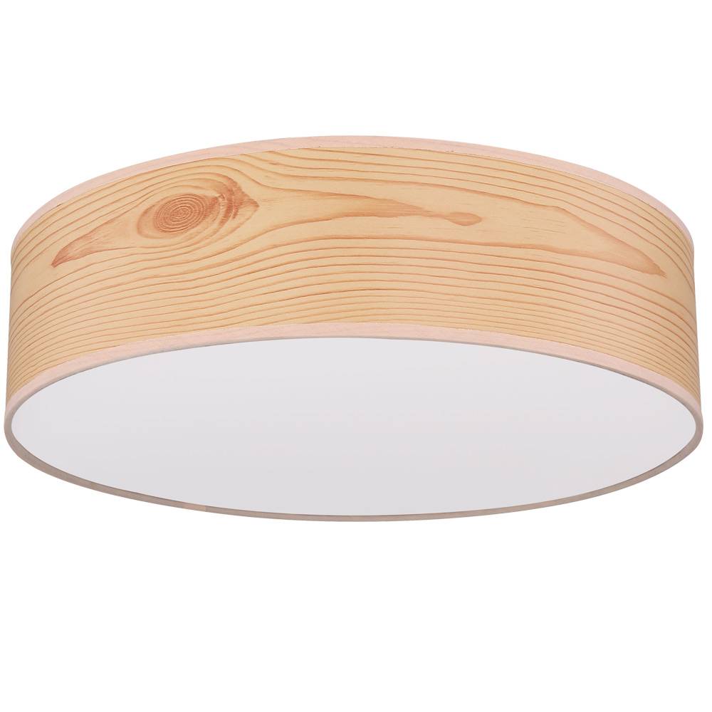 Die runde Deckenleuchte VARIOS (Ø 38cm) überzeugt durch Ihr schönes Design. Der naturfarbene Holzoptiklampenschirm umrandet das satinierte Kunststoffglas.