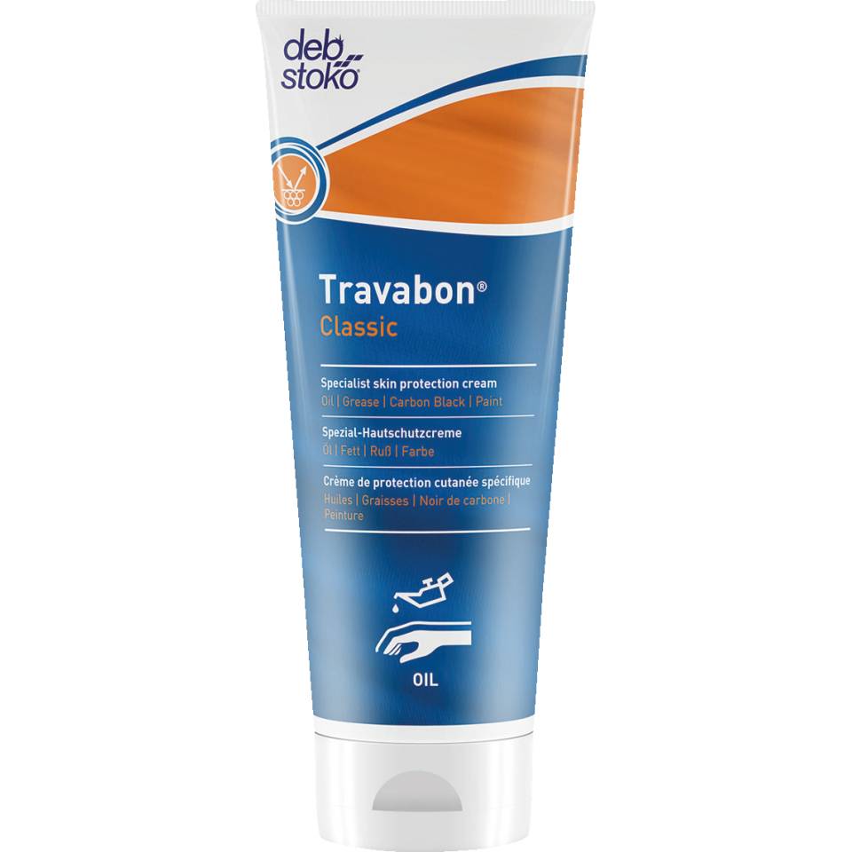 SC Johnson Hautschutzcreme Travabon®, zum Auftragen vor Arbeitsbeginn zum Schutz gegen starke ölige Arbeitsstoffe und Schmutz, wie z.B. Öle, Fette, Ruß, Farben und Lacke, erleichtert die Hautreinigung durch einzigartige Emulgatoren, erhöhte Schutzwirkungbei starken Verschmutzungen durch Hautschutzpigmente, gute Hautverträglichkeit, silikonfrei, 1 Tube = 100 ml