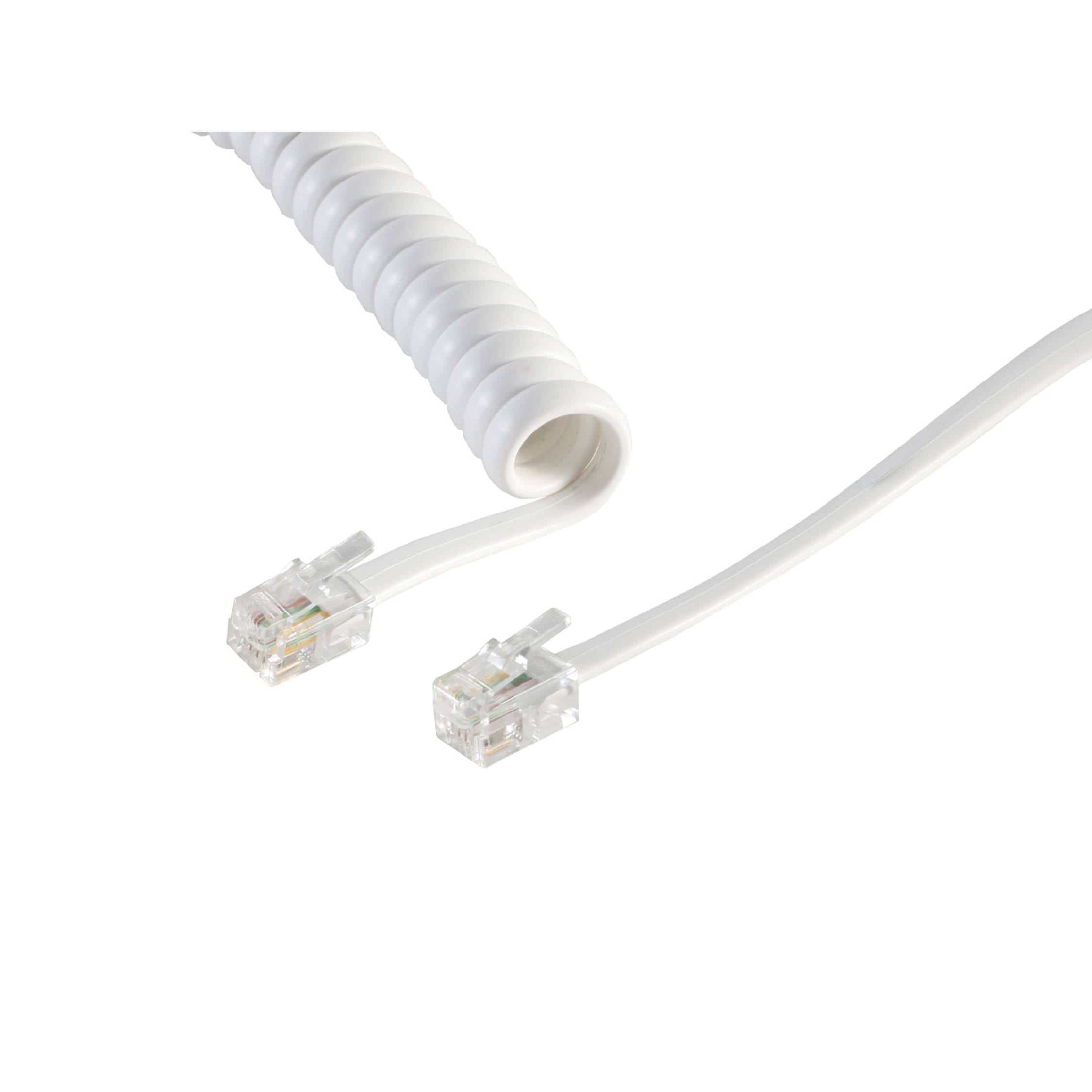 Telefonhörer-Spiralkabel--2x 4P4C weiß 4m