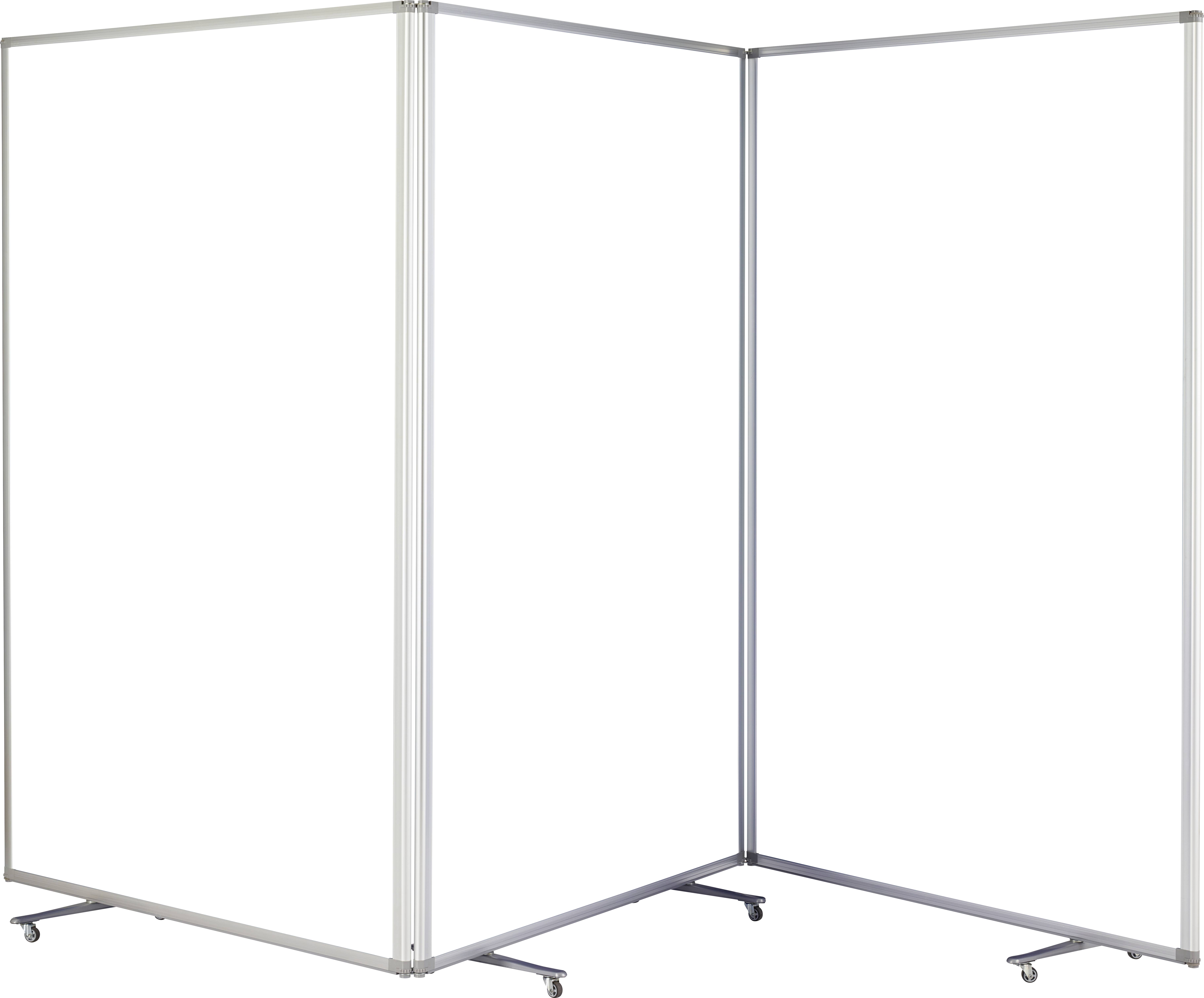 Die mobile Stellwand zum Abtrennen individuell abgeschirmter Räume mit halbtransparentem Sichtschutz. Besprechungsecken, Arbeitsbereiche etc. lassen sich so schnell und einfach schaffen bzw. strukturieren. Mit drei fest verbundenen, besonders lichtdurchlässigen Elementen aus mattiertem Polycarbonat (Stärke 7,5 mm). Durch stabilem Aluminium-Rahmen, leicht und flexibel wie ein Paravent aufstellbar. Mobil durch drehbare Füße mit 8 Laufrollen. Die Wand kann komplett zusammengeschoben werden und ist so platzsparend lagerbar. Gesamtgröße inkl. Rollen: 3610 x 1800 x 370 mm (B x H x T). Größe zusammengeklappt inkl. Rollen: 1200 x 1800 x 400 mm (B x H x T). Gewicht: 15,4 kg.