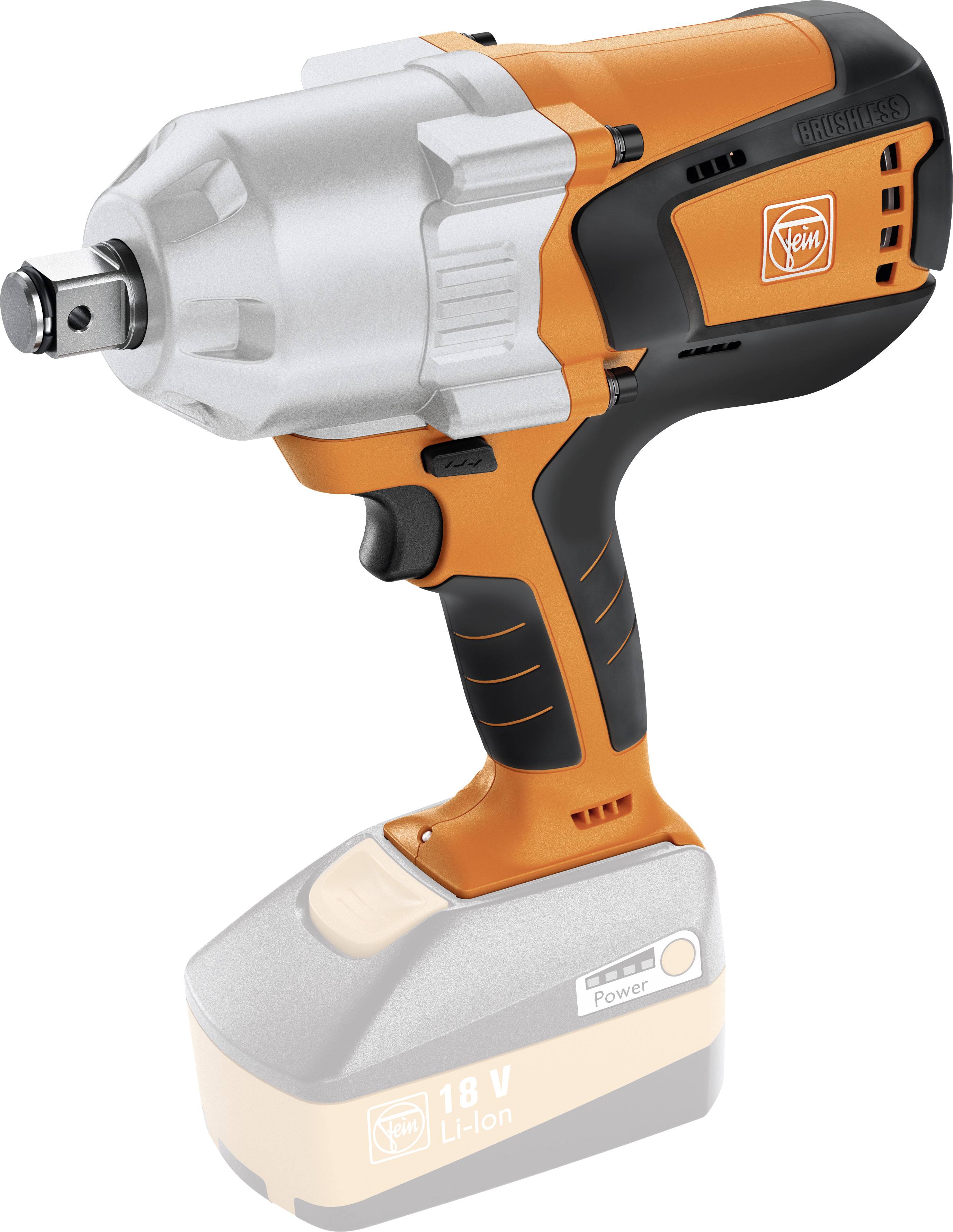 Elektronische Drehmomenteinstellung in 6 Stufen verhindert Abreißen von Schraubenköpfen · Hohes Drehmoment bis 1 050 Nm für Festziehen und Lösen von Schrauben bis M27 · Bürstenloser FEIN PowerDrive Motor mit 30% höherem Wirkungsgrad und langer Lebensdauer · Maximales Lösemoment von 1 500 Nm im Linkslauf · Sichere Verbindung der Schlagnuss am Abtriebsvierkant durch Kraft- und Formschluss · 3/4 in Außenvierkant zur Aufnahme von Schlagnüssen · Robustes Vollmetall-Schlaggetriebe · MultiVolt-Schnittstelle. Akku-Werkzeug ist mit allen FEIN Li-Ionen Akkus (12-18 V) betreibbar · 130 Verschraubungen (M27) mit einer Akku-Ladung (6 Ah) · Ein Ladegerät für alle FEIN Li-Ion Akkus aller Spannungsklassen · Der Akku-Ladestand ist direkt am Akku ablesbar · FEIN SafetyCell Technology. Schützt den Akku und die Maschine vor Überlastung, Überhitzung und Tiefentladung.