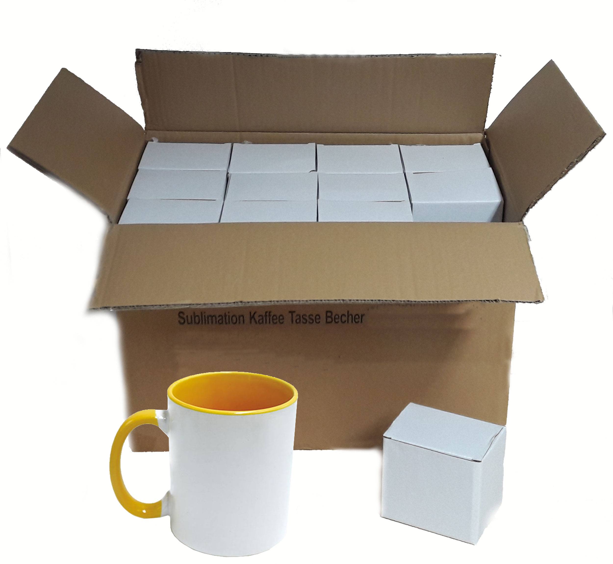 Sublimations Tassen Foto Becher 36 Stück WEISS - HENKEL Gelb einzeln verpackt