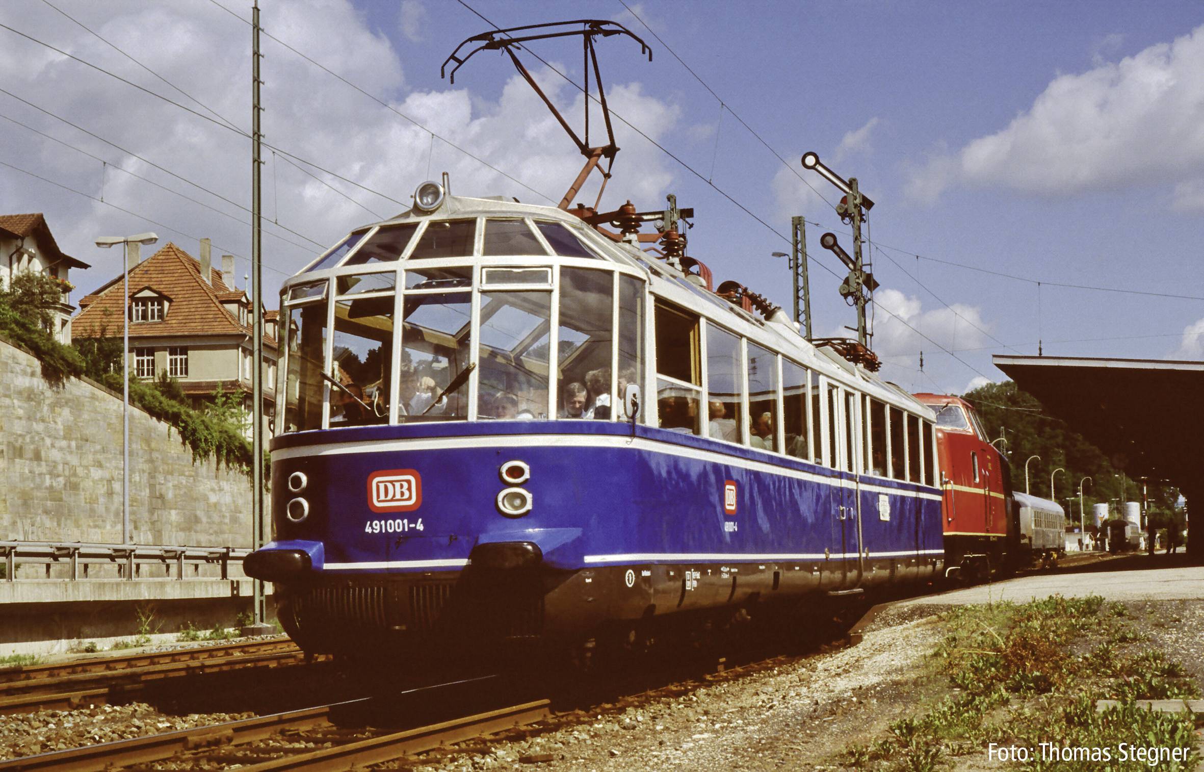 Neuheit 2021: Mit dem „gläsernen Zug“ stellt PIKO ein weiteres Stück Bahnnostalgie auf die Gleise. Der gläserne Wagenkasten erlaubt Einblicke ins Innere, samt bereits werkseitig eingesetzter Figuren. Eine ab Werk installierte Innenbeleuchtung erleuchtet die Fahrgäste. Ebenfalls beleuchtet ist das Führerpult. Der Lichtwechsel erfolgt mit der Fahrtrichtung wechselnd rot/weiß. Für den Betrieb in Österreich, wurde am Original 1976 ein SBS 65 Einholm-Stromabnehmer angebracht. Auch diese Besonderheit bildet das Epoche IV Modell ab. Die restliche Dachausrüstung ist mit diversen Dachleitungen und Isolatoren stimmig wiedergegeben. Ein starker Bühler Motor verleiht dem „Gläsernen“ von PIKO ausreichend Zugkraft. Zur optimalen Stromversorgung, sind zwei zusätzliche Schienenschleifer angebracht. Die Digitalversion ist bereits werkseitig mit Decoder und Sound ausgestattet. Besonderheit ist der digital ansteuerbare Stromabnehmer. Für die analoge Variante sind all diese Funktionen nachrüstbar.