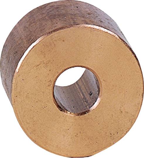 Cu-Distanzrolle, Durchmesser x Länge: 30 x 22 mm, Innendurchmesser 10,5 mm, Übertragungsquerschnitt 620 mm². Die Ableitungsschienen werden mit Cu-Distanzrollen verbunden.