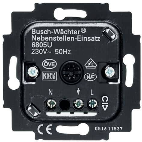 3-Leiter-Anschlusstechnik (Neutralleiter erforderlich).Zur Erweiterung von Busch-Wächter® 180 UP und Busch-Wächter® Präsenz tech Installationen.Zur Kombination mit Relais-Einsatz 6401 U-102 und 6402 U.Zur Kombination mit MOS-Fet-Einsatz 6804 U-101.Zur Kom