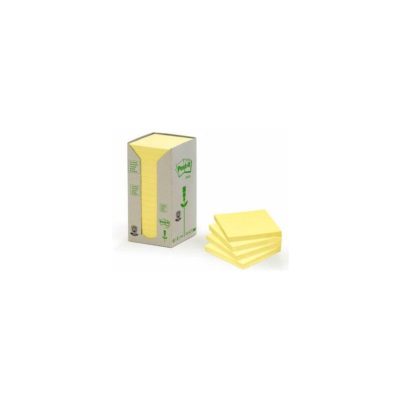 Post-it Haftnotizen Recycling, 76 x 76 mm, gelb 100 Blatt/Block, aus 100% recyceltem Papier