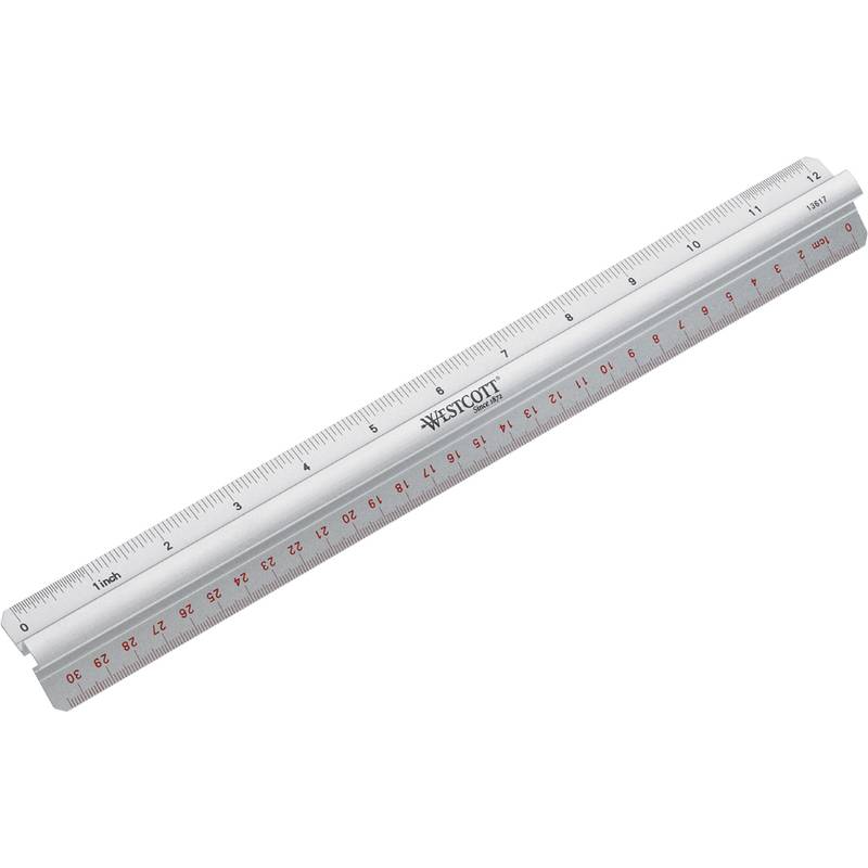 WESTCOTT Lineal, Länge: 300 mm, aus Aluminium, mit Griff 30 cm (12'), beidseitige Facetteneinteilung, cm- und inch-