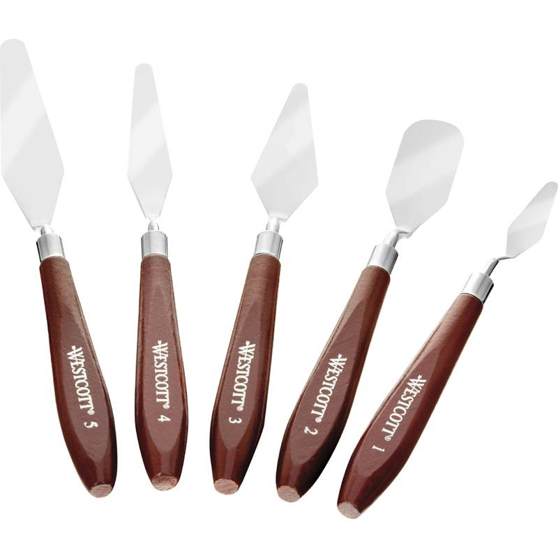 WESTCOTT Modellierwerkzeug Malspachtel-Set, 5-teilig fünf verschiedene Spachteln mit Stahlklingen mit langem