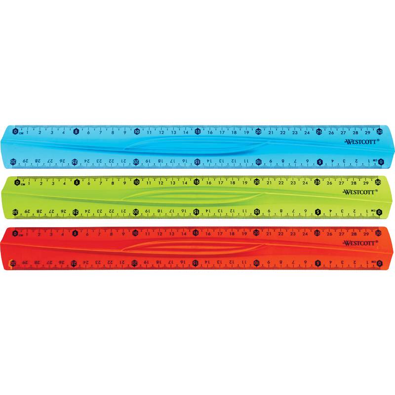WESTCOTT Flachlineal, Kunststoff, Länge: 300 mm, flexibel beidseitige Facetteneinteilung in cm, aus bruchsicherem