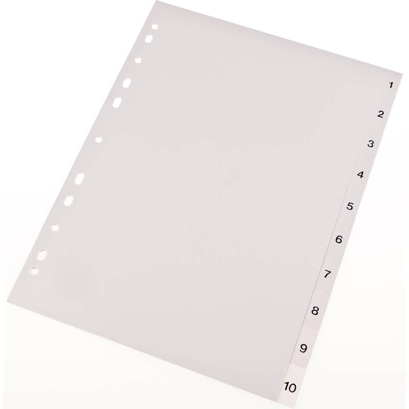 proOFFICE Kunststoff-Register, Zahlen, A4, 10-teilig aus PP, Stärke: 0,12 mm, grau, 11-fach gelocht