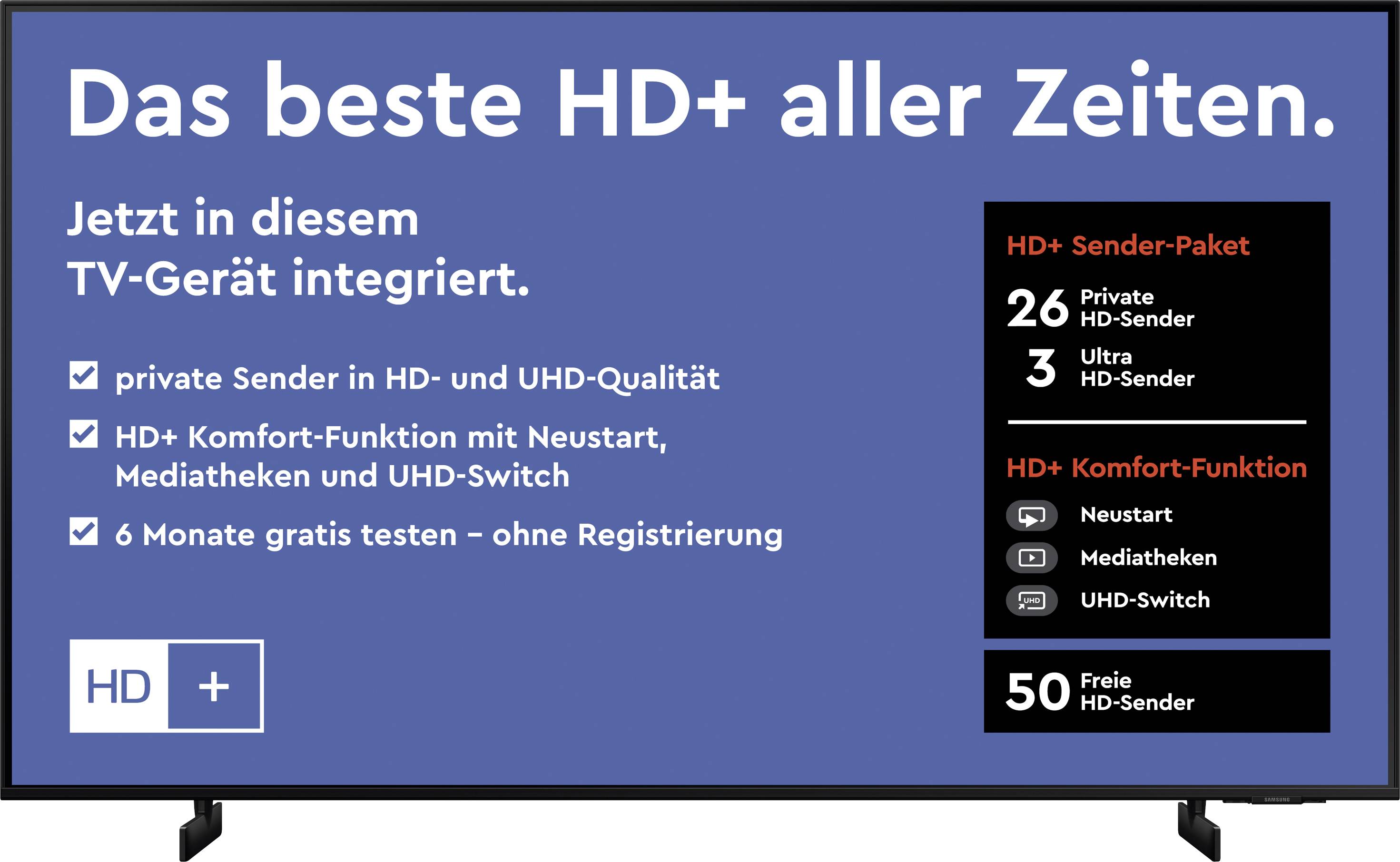 Crystal UHD TV · PQI 2300 · HDR · Crystal Display · Alexa&Bixby integriert · Mobile View · Ambient Mode · Eco Smart Remote (Schwarz) · Farbe: Schwarz.