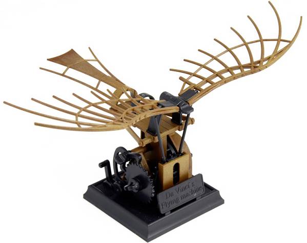 Der Ornithopter ist eine Maschine, die den Flug in Nachahmung von Vögeln durch die Bewegung der Flügel erreichen soll. Im Jahr 1485 begann Leonardo da Vinci, den Flug verschiedener Vögel zu studieren. Er erkannte, dass ein Mann nicht die nötige Kraft hatte und zu schwer war, um einfach mit Flügeln, die er an den Armen trug, zu fliegen. Also entwarf er eine Maschine, bei der ein Mann, der auf einer Bank lag, dank einer Reihe von Hebeln, Pedalen und Umlenkrollen zwei große häutige Flügel bewegen konnte.