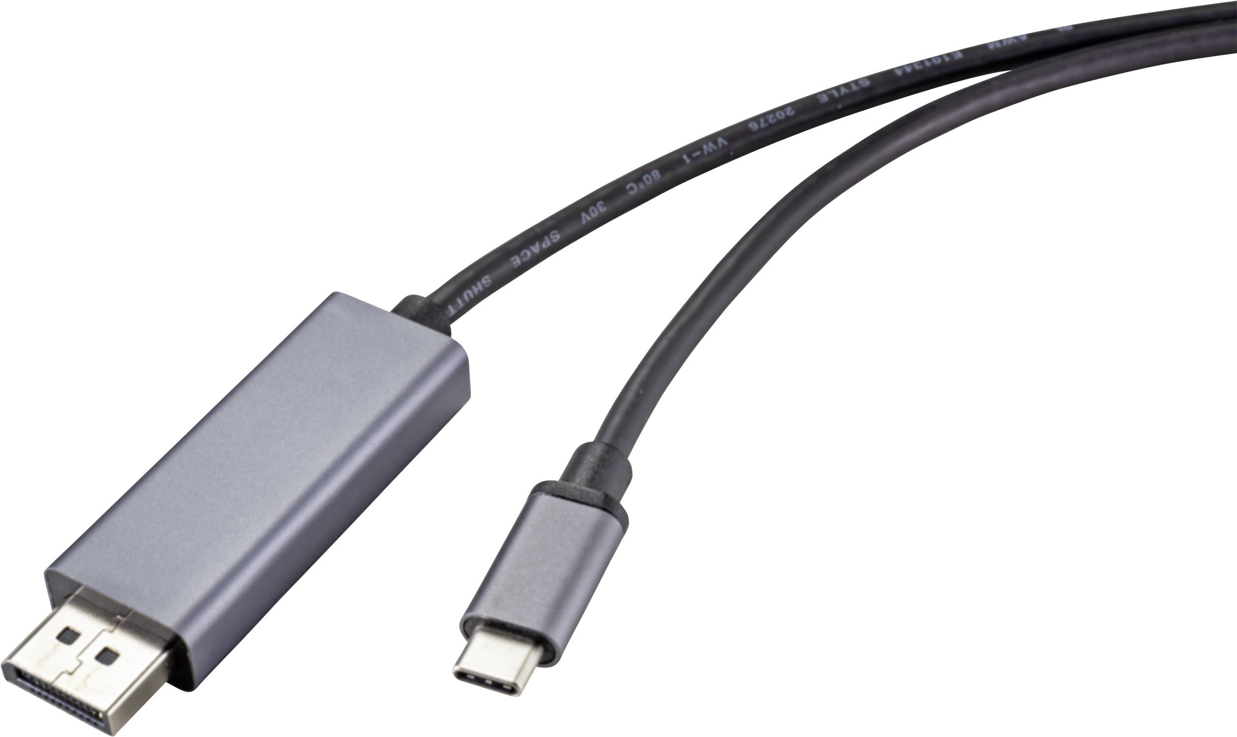 Renkforce USB-C® / DisplayPort Anschlusskabel USB-C® Stecker, DisplayPort Stecker 1.00m Schwarz RF-4630696 PVC-Mante