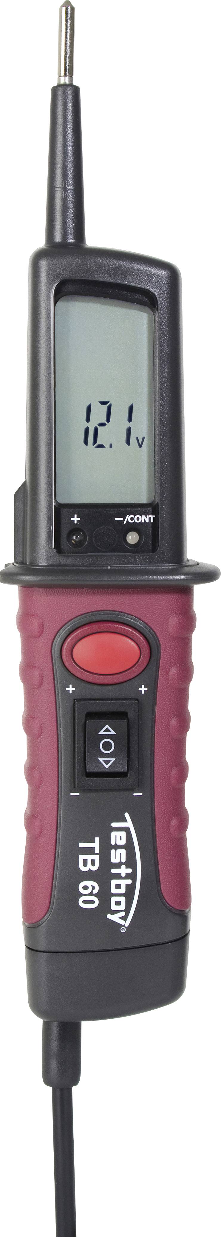 Der Testboy 60 ist ein Automotive Spannungsprüfer mit LCD-Anzeige. Er kann Spannungs-, Polaritäts- und Durchgangsprüfungen durchführen, dabei müssen einzelne Komponenten von der Batterie nicht entfernt oder neu angeschlossen werden. Eine weitere dienliche Funktion ist die Frequenzmessung der Zündimpulse und, ob die angezeigte Motordrehzahlen stimmt, kann errechnet werden. Mit Hilfe der Messspitze und der Masseleitung kann der Anwender die zu testende Komponente (z.B. Licht, Lüfter, Kraftstoffpumpen) aktivieren. Der Gar-Tester kann die Frequenz der Zündimpulse messen. Zudem ist eine Peakerkennung in einstellbaren Stufen von 0,5 V, 1 V, 2 V, 5 V, 10 V und 48 V möglich.
