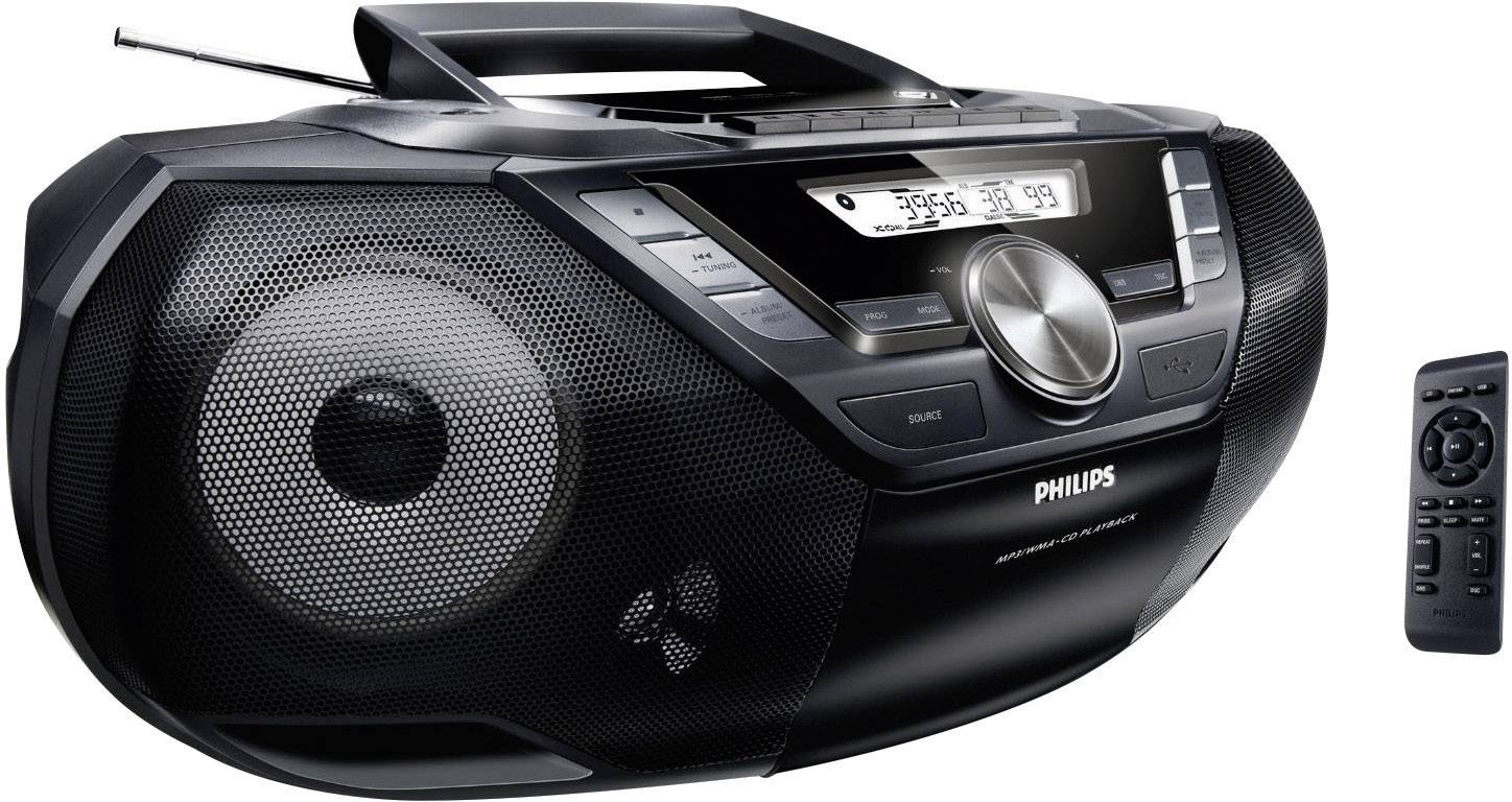 Dank USB Direct, Bassreflex-Lautsprechersystem und 12 W RMS Gesamtausgangsleistung können Sie mit der Philips CD-Soundmachine digitale Musik von Ihrem tragbaren Gerät mit kräftigem Sound genießen - jederzeit und überall.