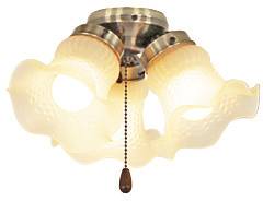 CasaFan® Leuchte 3 MA, Metallteile Messing antik3 Glastulpen ätzmatt mit Ornamenten, max. 3 x 60 W E27, auch für Energiesparleuchtmittel geeignet, Zugschalter ein/aus, Anbauleuchte an CasaFan-Deckenventilatoren