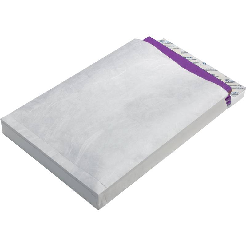 Tyvek Faltentasche B4 mit Klotzboden, ohne Fenster, weiß 55 g/qm, Haftklebung mit Abdeckstreifen, 250 x 40 x 353 mm,