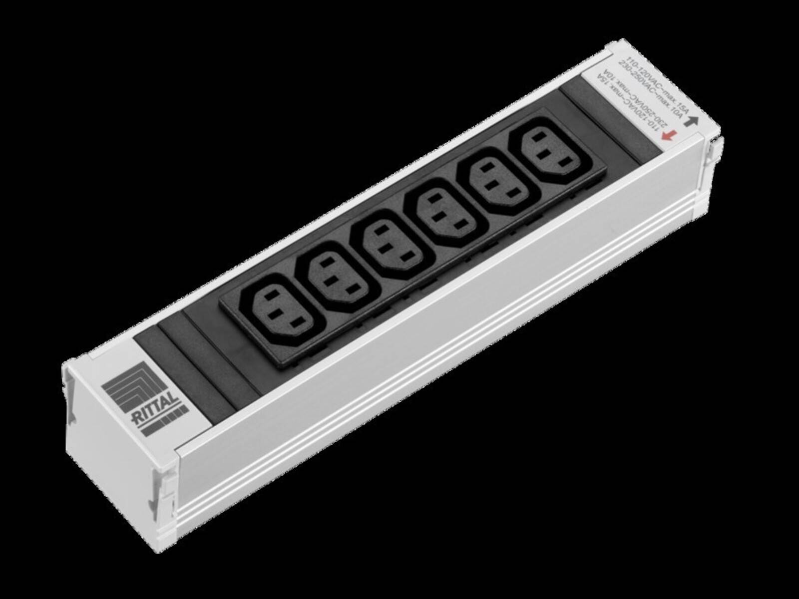 DK PSM Steckdosenmodul, zur modularen PSM Stromverteilung. Belegt 1 Steckplatz in der Stromschiene. IEC 60 320: 6x C13, 230 V, 16 A