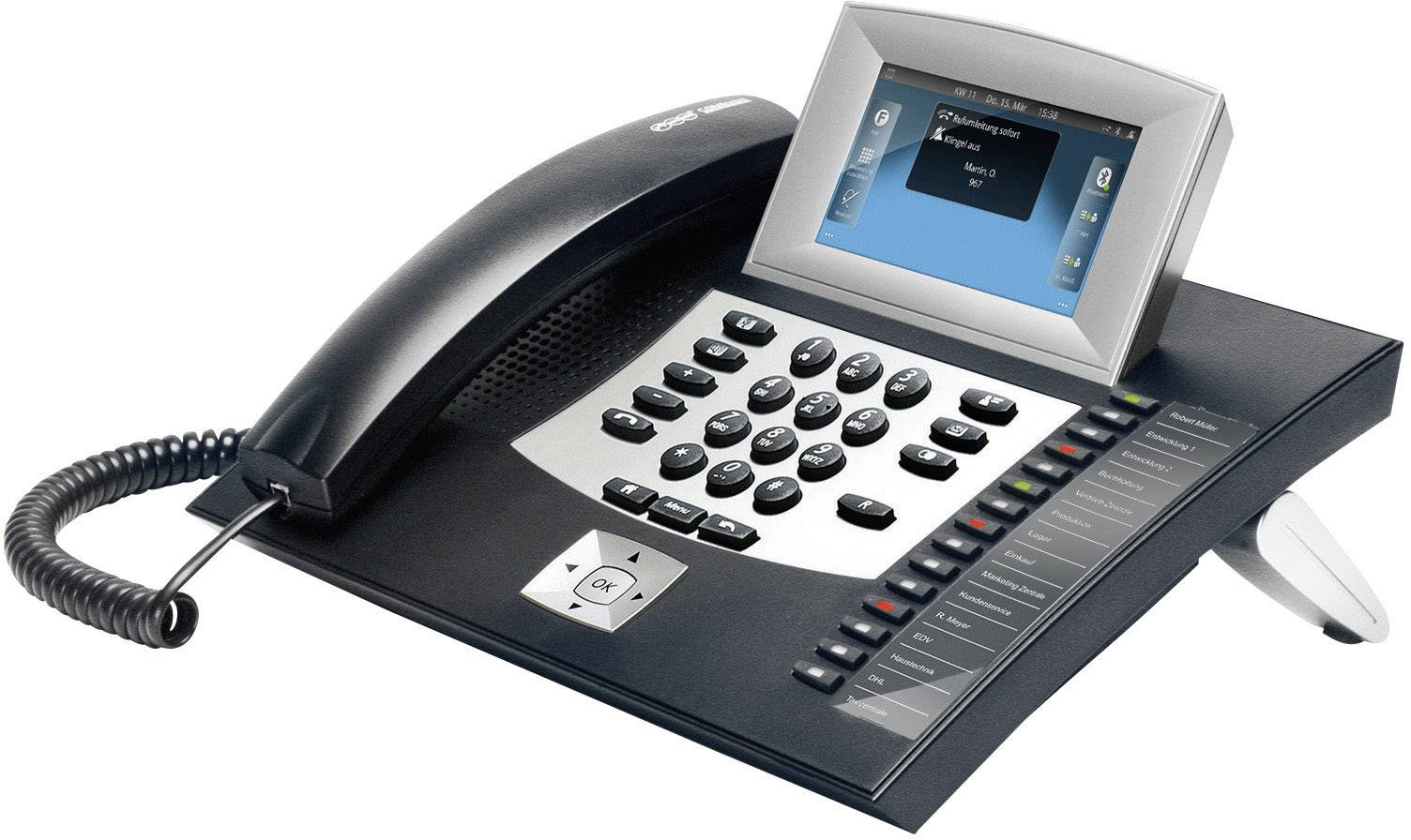 Übrigens: Optional ist mit dem COMfortel 3200 auch Bluetooth möglich. Einmal mit Ihrem Handy gekoppelt, registriert das COMfortel 3200 per Bluetooth® automatisch, ob Sie in der Nähe Ihres Telefons sind. Wenn nicht, wird der Ruf automatisch auf Ihr Handy geleitet. Auch der integrierte Anrufbeantworter glänzt mit höchstem Komfort: Er erkennt selbsttätig, ob es sich um einen internen oder externen Anruf, einen anonymen Anruf oder ein Türsignal handelt – und reagiert entsprechend differenziert. Zusätzlich kann für jeden hinterlegten Kontakt eine spezielle Rufannahme hinterlegt werden. Dank integriertem VPN-Client können Verbindungen von Nebenstellen, wie z. B. einem Home-Office, zum Firmennetz so sicher hergestellt werden, wie dies sonst nur mit einem zusätzlichen VPN-Router möglich ist.