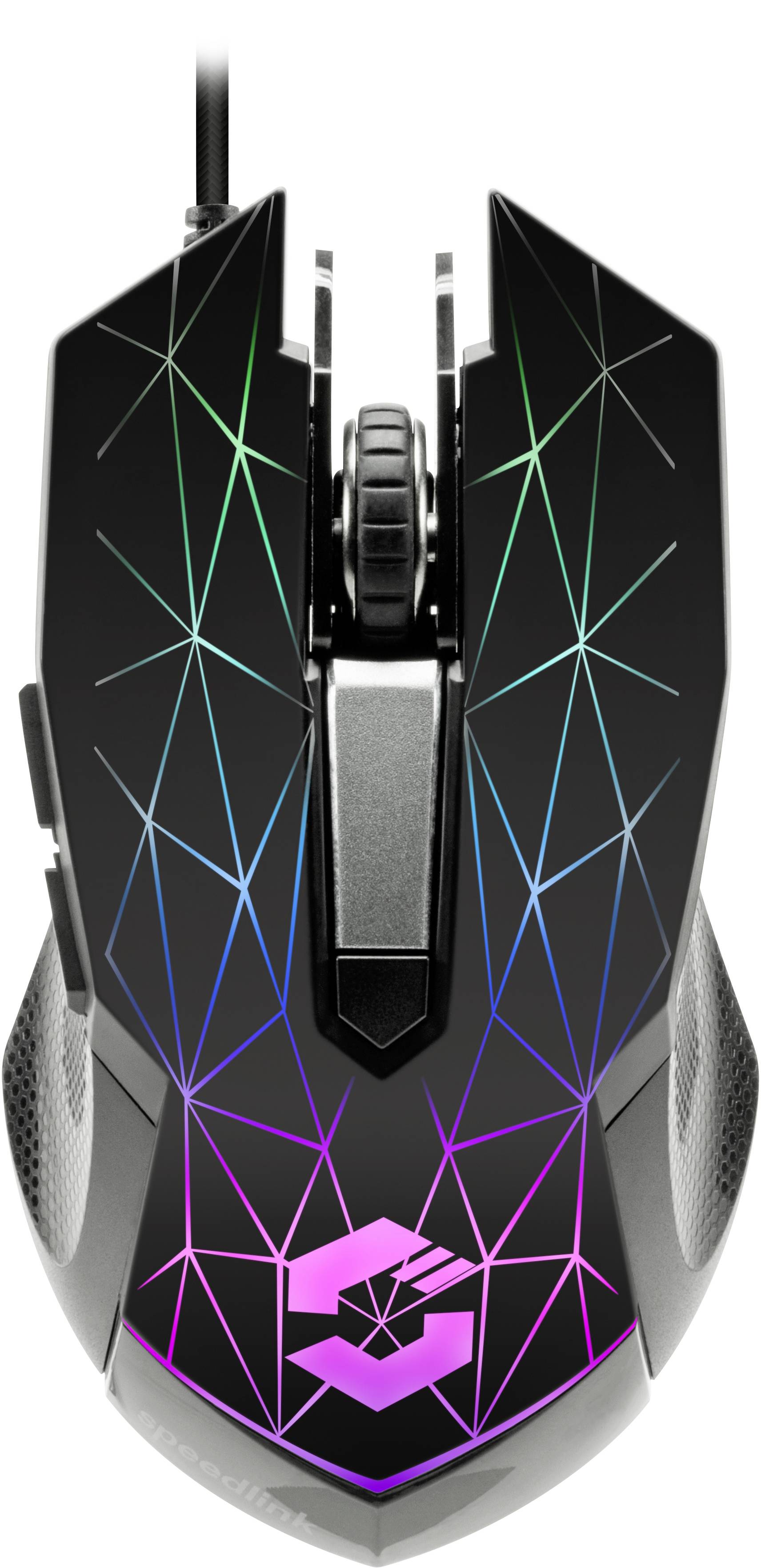 USB-Gaming-Maus mit RGB-Beleuchtung 6 ergonomisch angeordnete, programmierbare Tasten inkl. dpi-Schalter Stylisches Diamond-Line-Design auf der Oberseite Markante Form Lichteffekte in 16,7 Millionen Farben Farben, Makros und Tasten per Software konfigurierbar High-End-Gaming-Sensor Pixart 3325 mit 5.000dpi (bis zu 10.000dpi interpoliert) 1.000Hz Polling Rate Gummibeschichtung für perfekten Grip Glatte und reibungsarme Gleitpads an der Unterseite Ummanteltes Kabel Verbindung: USB-A Kabellänge: 1,8m Abmessungen: 128 × 72 × 40mm (L × B × H) Gewicht: 137g (inkl. Kabel)