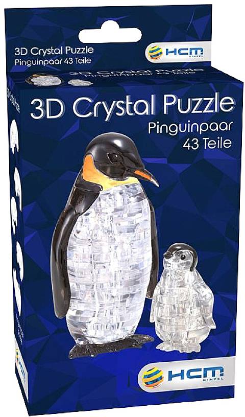 Crystal Puzzle - Pinguinpaar (43 Teile)Setzen Sie aus den verschieden geformten Einzelteilen Stück für Stück eine wünderschöne Kunststoff-Kristallfigur in Form von Pinguinen zusammen. Das dreidimensionale Puzzle ist eine echte Herausforderung für das räumliche Vorstellungsvermögen: Die zweidimensionalen Bilder der Anleitung müssen in dreidimensionale Objekte umgesetzt werden. Jedes 3D-Puzzleteil sieht anders aus und macht es somit besonders knifflig. Wer gut im Knobeln ist, wird schließlich mit einem hochwertigen Dekorationselement belohnt.Sammeln Sie alle Puzzles und entdecken Sie jetzt auch die großen Crystal Puzzles mit noch mehr Teilen.! Inhalt: Crystal Puzzle aus 43 Teilen mit Anleitung Größe Produkt (cm): x x Größe Verpackung (cm): 17,5 x 9,5 x 5