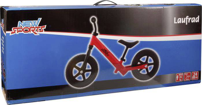 New Sports Laufrad rot, 12 Zoll EVA Reifen. Aluminium Gestell. Lenkerhöhe ist verstellbar von ca. 57 bis ca. 60cm. Maximale Belastbarkeit 35kg. Für Kinder ab 24 Monaten.