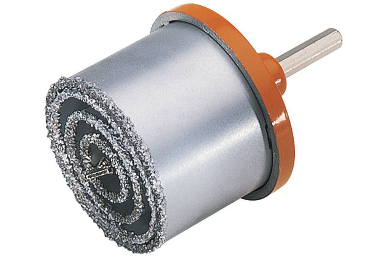 Für alle Installationsarbeiten (Steckdosen, Verteilerdosen, Rohre) · Für Mauerwerk, Ziegelsteine, Leichtbausteine, Gipskartonplatten, Fliesen komplett mit Aufnahmeteller und Zentrierbohrer · Material: HM-bestreut