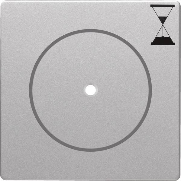 Zentralstück mit Druckknopf für Zeit-Relais-Schalteinsatz Q.x alu samt, lackiert. Zentralstück mit Druckknopf und klarer Linse für Zeit-Relais-Schalteinsatz, mit Aufdruck, Unterputz-Installation, Flächenprogramm.