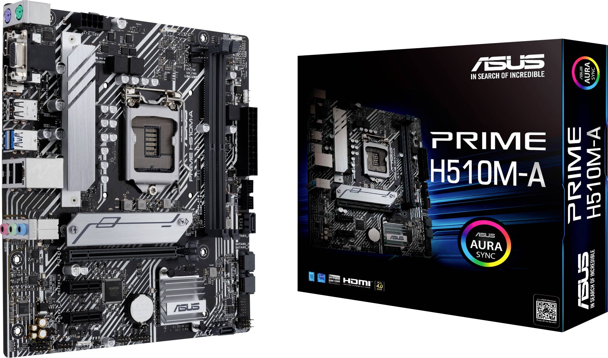 ASUS Prime H510M-A Gaming Mainboard Sockel Intel LGA1200 (mATX, M.2, USB 3.2 Gen 1 Typ-A, Intel 1Gbit/s Ethernet, PCIe 4.0, AURA-Gen-2-Header)
