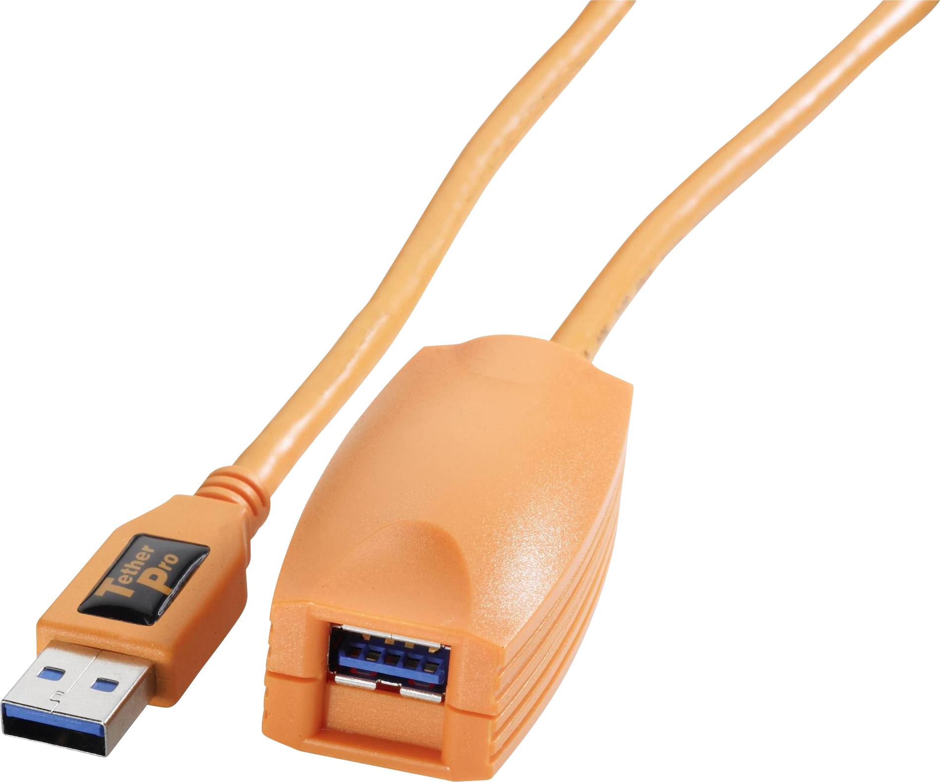 Tether Tools TetherPro USB 3.0 Active Extension 5m - orange Features -SuperSpeed USB 3.0 hat eine Signalrate von 5 Gbps, das heißt 10x mehr Leistung als Hi-Speed USB 2.0 -integrierte Sync-N-Go Technologie, welche die Wartezeit minimiert -optimierte Leistungseffizienz. Keine Gerätabfrage und weniger aktiven und spannungslosen Strombedarf -rückwärtskompatibel zu USB 2.0 Dieses hochwertige USB 3.0 Verlängerungskabel von TetherTools ist ein aktives Verlängerungsgerät. Aktive Verlängerungskabel ermöglichen Ihnen weite Distanzen im angebundenen (tethered) Zustand, ohne dass Sie sich über Signalfehler oder das Verlorengehen von Daten sorgen müssen. Mit einem aktiven USB Gerät werden ein- und ausgehende Signale und Datenübertragungen zwischengespeichert, um durchgehende Signalqualität zu gewährleisten. Bei der Verwendung von passiven Kabeln für Datenübertragung mit über 5m (16 Fs.) Länge können Signalfehler und/oder Rauschen auftreten. Ab der Länge von 5m sind diese nicht mehr empfehlenswert. Bis zu 4 aktive USB Verlängerungen und 1 passives 4.6m (15') USB Kabel können zusammen geschalten werden, um eine Länge von 24m (80 Fuss) zu erreichen, ohne dass irgendwelche Mängel am Signal oder an der Qualität festgestellt wird. Konzipiert um den USB 3.0 Spezifikationen zu entsprechen, um Signalrauschen herauszufiltern und Übertragungsfehler zu reduzieren, sind alle Kabel völlig umschirmt, um sich gegen externe Signalstörungen zu schützen. Mit einem aktiven USB Gerät werden ein- und ausgehende Signale und Datenübertragungen zwischengespeichert um eine gleichbleibende Signalqualität zu gewährleisten. Der Aufbau ist simpel: Stecken Sie einfach den Stift der Active Extension in Ihren Computer und anschließend verbinden Sie das USB Kabel Ihrer Kamera oder eines anderen Geräts in die Buchse des Verlängerungskabels. Für längere Distanzen fügen Sie einfach zusätzliche aktive Verlängerungserweiterungen in die Reihe ein, um die notwendige Länge zu erreichen. Prüfen Sie die Spezifikationen des Herstellers Ihrer Geräte, um den korrekten Kabeltyp und die passenden Verbindungen zu finden. Spezifikationen -Länge: 5 Meter (16 Fuss) -Übertragungsgeschwindigkeit: 5 Gbps -Anschluss: USB 3.0 A Stecker -kompatibel mit: USB 3.0, USB 2.0 -Farbe: High Visibility orange