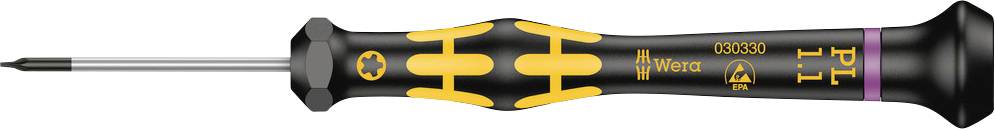 Elektrostatisch abgesicherter Micro Schraubendreher. Sicherer Schutz vor elektrostatischer Energie und damit verbundenen Schäden. Durch Abstützen der Hand auf der Drehkappe und durch die Schnelldrehzone unterhalb der Drehkappe ist blitzschnelles Zwirbeln möglich. Zeitintensives Umgreifen entfällt. Kraftzone mit integrierten Weichzonen sorgt für die Übertragung hoher Löse- und Anzugsmomente. Präzisionszone für den richtigen Drehwinkel bei Justierarbeiten. Die Black Point-Spitze bietet Passgenauigkeit und optimierten Korrosionsschutz. Take it easy Werkzeugfinder mit Farbkennzeichnung nach Profilen und Größenstempelung – zum einfachen und schnellen Finden des benötigten Werkzeugs.