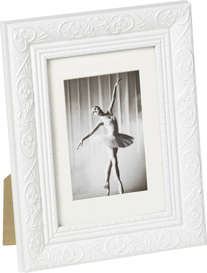 Walther Barock Holzrahmen 20 x 30 cm Der Walther Barock Rahmen aus Holz mit weißer Ornamentleiste hat ein mehrfach gekehltes Profil mit Relief. Merkmale: -Gewaschenes Klarglas -Farbe: weiß -Abmessungen: 27,0 cm x 2,1 cm x 37,0 cm -Bildformat: 20 x 30 cm -Schrägschnittpassepartout -Rückwand: Hartfaser -Mit Aufsteller und Aufhängevorrichtung in der Drehklammer