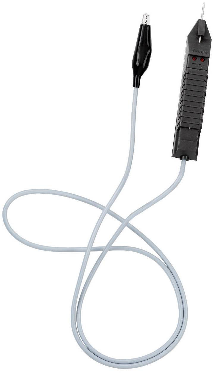 Zweipoliger Spannungsprüfer für die KFZ-spezifische Anwendung bis 48 V. Die Spannung sowie die Polarität wird über LEDs angezeigt. Ein integrierter Einstichdorn ermöglicht die Kontaktierung von isolierten Leitungen ohne eine großflächige Öffnung der Isolierung.