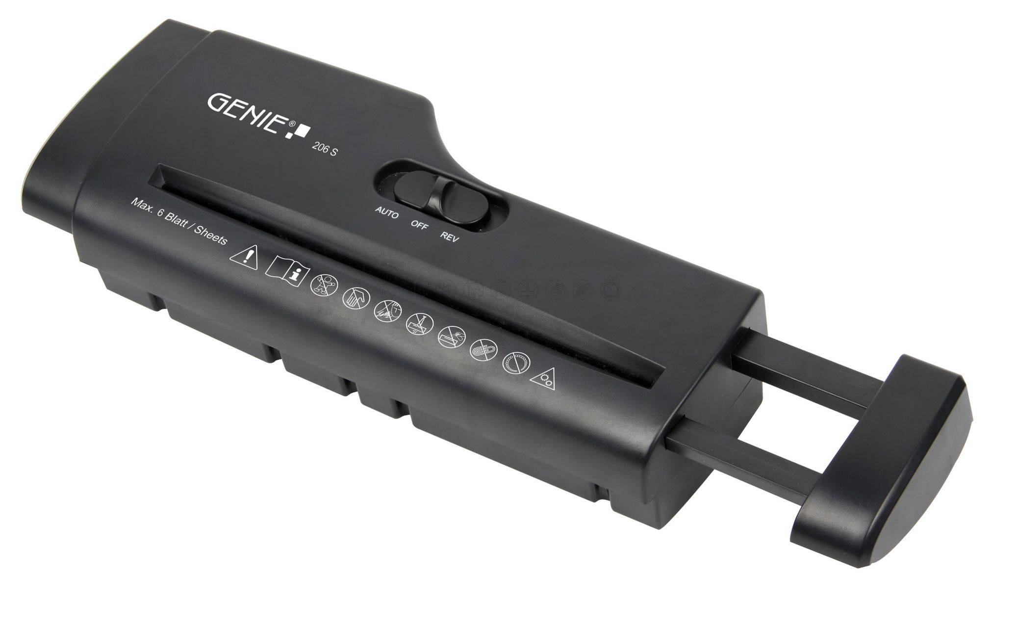 Der Genie 206S Aktenvernichter ist ein flexibler und zuverlässiger Papierschredder, der in attraktivem schwarzen Design kommt. Er ist universell einsetzbar und kann dank des ausziehbaren Haltebügels flexibel genutzt werden. Mit einer Kapazität von bis zu 6 Blatt DIN A4 (80g/m²) pro Arbeitsgang können Akten und Unterlagen schnell vernichtet werden.