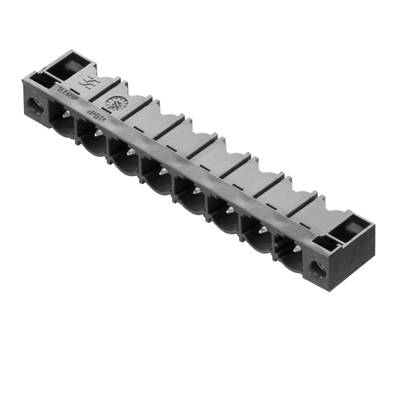 Leiterplattensteckverbinder. Stiftleiste, Lötflansch, Lötanschluss, 7,62 mm, Polzahl: 5, 90 °, Lötstiftlänge: 3,2 mm, verzinnt, schwarz, Box. Power on board - 100% Sicherheit, 100% Integration, 100% Wirtschaftlichkeit: Die kompakte und rationelle Lösung für UL-600V-Applikationen im unteren Leistungsbereich bis 12kVA. 29 A bei 400V (IEC), 18,5 A bei 600 V (UL). Einzelkammersteckgesicht. Klemmbereich: 0,08 - 4 mm² / AWG 28 - 12. Der Erfüllungsgehilfe bei der Gerätezulassung: erfüllt die erhöhten Anforderungen an den Behrührungschutz gem. IEC68100-5-1. Die Schlankheitskur für mehrstufige Geräteserien: Reduzieren Sie Baugröße und Kosten im hochvolumigen, unteren Leistungsbereich - ohne Kompromisse bei der Zulassung! Stiftleiste, 90° Abgangswinkel mit Lötflanschen.