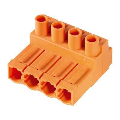 Leiterplattensteckverbinder. Stiftstecker, 7,62 mm, Polzahl: 5, 180 °, Zugbügelanschluss, Klemmbereich, Bemessungsanschluss, max.: 2,5 mm², Box. 180 °;-invertierte Stiftleiste mit Zugbügelanschluss für die Feldverdrahtung in 2,5 mm² im Raster 7.62. Ideal auch als fingersichere Lösung bei Rückspannung. Erfüllt die Anforderungen gemäß UL1059 600 V Class C und IEC 61800-5-1. Varianten: ohne Flansch, mit Außenflansch oder mit Löseriegel lieferbar. 0,5 - 2,5 mm² (IEC) / 20 - 12 AWG (UL), 400 V (IEC) / 600 V (UL), 20 A (IEC) / 15 A (UL).
