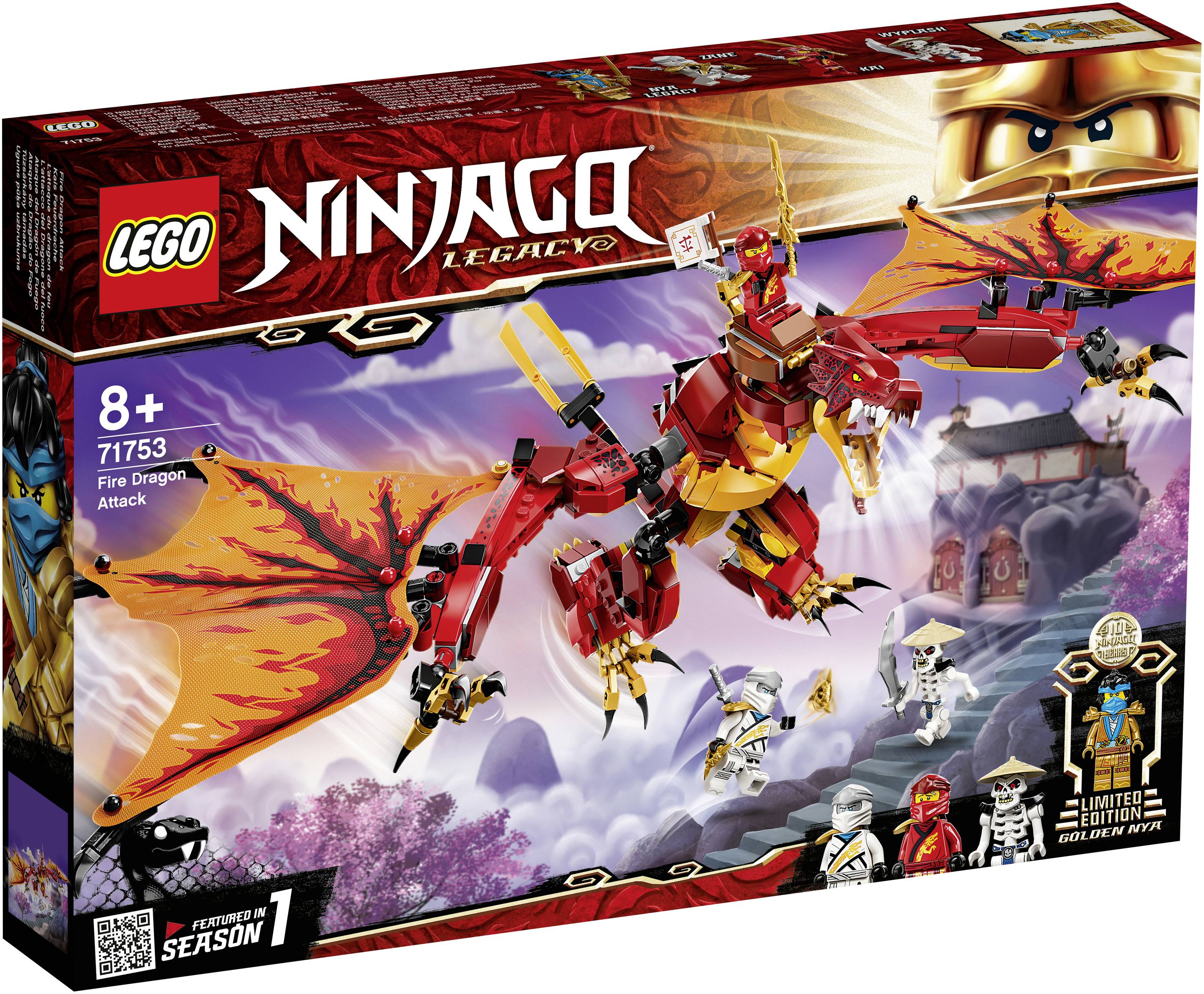 Ninja-Fans werden mit dem neuen Spielset „Kais Feuerdrache“ (71753) gerne die abenteuerlichen Flugmanöver aus der 1. Staffel der NINJAGO® TV-Serie nachstellen. Der imposante Spielzeugdrache eignet sich mit seinen beweglichen Gliedmaßen für packende Action-Rollenspiele.Absoluter Nervenkitzel für begeisterte Ninja-FansDas Spielset beinhaltet 4 coole Minifiguren. Die Ninja Kai, Zane und Nya Legacy sowie der böse Wyplash lassen Kinder spannende Duelle zwischen Gut und Böse austragen. Nya Legacy (neu ab Juni 2021) ist eine goldene Minifigur zum Sammeln und Ausstellen – zur Feier des 10-jährigen Jubiläums der NINJAGO Spielsets.Außergewöhnliche Spielzeuge für fantasievolle BaumeisterLEGO NINJAGO Spielzeuge lassen Kinder in eine Fantasiewelt entfliehen, in der sie ihren Helden gegen üble Bösewichte beistehen. Das breite Spektrum an Bausets umfasst unter anderem Mechs, Motorräder und Drachen.