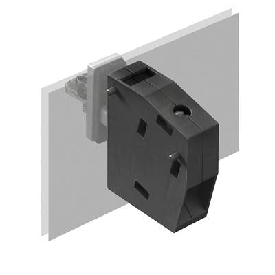 Durchführungsklemme. Serie WGK, Bemessungsquerschnitt: 95 mm², Schraubanschluss, schwarz, Direktmontage, Durchführung. Die VP-Varianten der WGK Durchführungsklemmen mit einem Isoliergehäuse und Zugbügelanschluss auf der externen Seite und Kabelschuhanschluss auf der internen Seite, für den Einsatz in vergossenen Geräten (z.B. EMV-Filter). Der äußere Anschluss dieser Varianten ist identisch mit den WGK-Durchführungsgeräteklemmen mit horizontaler Leitereinführung.
