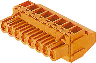 Leiterplattensteckverbinder. Buchsenstecker, 5,08 mm, Polzahl: 14, 90 °, Zugbügelanschluss, Klemmbereich, Bemessungsanschluss, max.: 3,31 mm², Box. 0,2 - 2,5 mm² (IEC) / 26 - 12 AWG (UL), 400 V (IEC) / 300 V (UL), 15 A (IEC) / 10 A (UL).