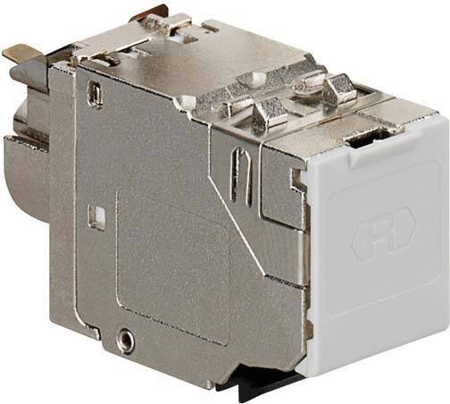 Universalmodul Cat.8.1/Class I, geschirmt, abwärtskompatibel zu Cat.6A (iso), passend für Standard-Keystone-Ausschnitte (14,7x19,3 mm), für den Einsatz in 40-Gigabit-Ethernet-Netzwerken (Übertragungsbandbreite bis 2000 MHz), Zinkdruckgussausführung, vernickelte Gehäuseoberfläche, für Datenkabel mit 6-10 mm Durchmesser, IDC-Klemmen für einen Leiter 0,57-0,64 mm Durchmesser, AWG 23/1-22/1, Außendurchmesser 0,9-1,6 mm bei PE