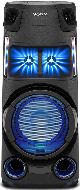 Veranstalten Sie Partys wie nie zuvor Mit dem leistungsstarken MHC-V43D wird die Nacht zu einem unvergesslichen Erlebnis. Dank des weitreichenden Basses und der bunten Partybeleuchtung, die im Takt der Musik leuchtet, wird die Tanzfläche zum angesagtesten Ort.