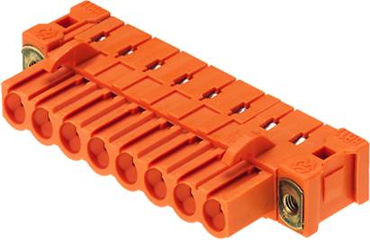 Leiterplattensteckverbinder. Buchsenleiste, Flansch invertiert, Lötanschluss, 5,08 mm, Polzahl: 24, 90 °, Lötstiftlänge: 3,2 mm, verzinnt, orange, Box. Buchsenleiste für die Leiterplattenmontage. Die Lötstiftlänge ist für Wellenlötanwendungen optimiert. 400 V (IEC) / 300 V (UL), 23 A (IEC) / 15 A (UL).