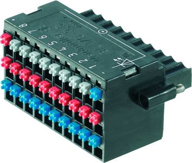 Leiterplattensteckverbinder. Buchsenstecker, 3,50 mm, Polzahl: 30, 180 °, PUSH IN Federanschluss, Klemmbereich, Bemessungsanschluss, max.: 1 mm², Box. Buchsenleiste mit Federanschluss (Push In) als steckbare Anschlussebene für dezentrale I/O-Elektronik, der Einsatz erfolgt in Verbindung mit den Stiftleisten im Raster 3,50 mm. 0,20 - 1,5 mm² (IEC) / 22 - 16 AWG (UL), 50 V (IEC) / 50 V (UL),, 2,2 A (IEC) / 5 A (UL).